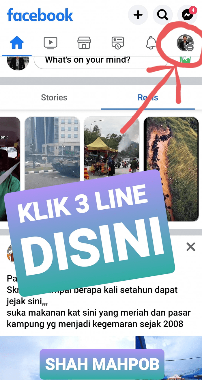 1. Klik 3 garisan di Homepage Aplikasi Facebook