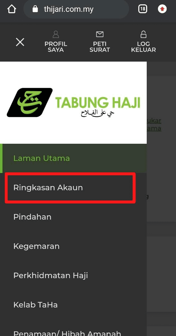 Berikut adalah cara untuk semak baki akaun tabung haji serta dividen TH secara online: