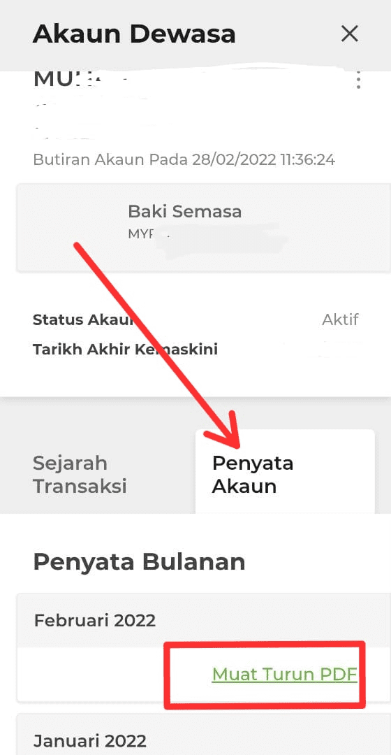 5. Klik Penyata Akaun dan klik Muat Turun PDF bulan terkini