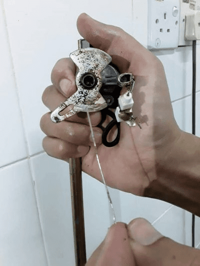 Kalau kaum wanita yang ingin membuatnya sendiri, tidak perlu sehingga keluarkan injap dan paip gas ini. Teruskan sahaja cucuk klip kertas ke saluran injap gas.