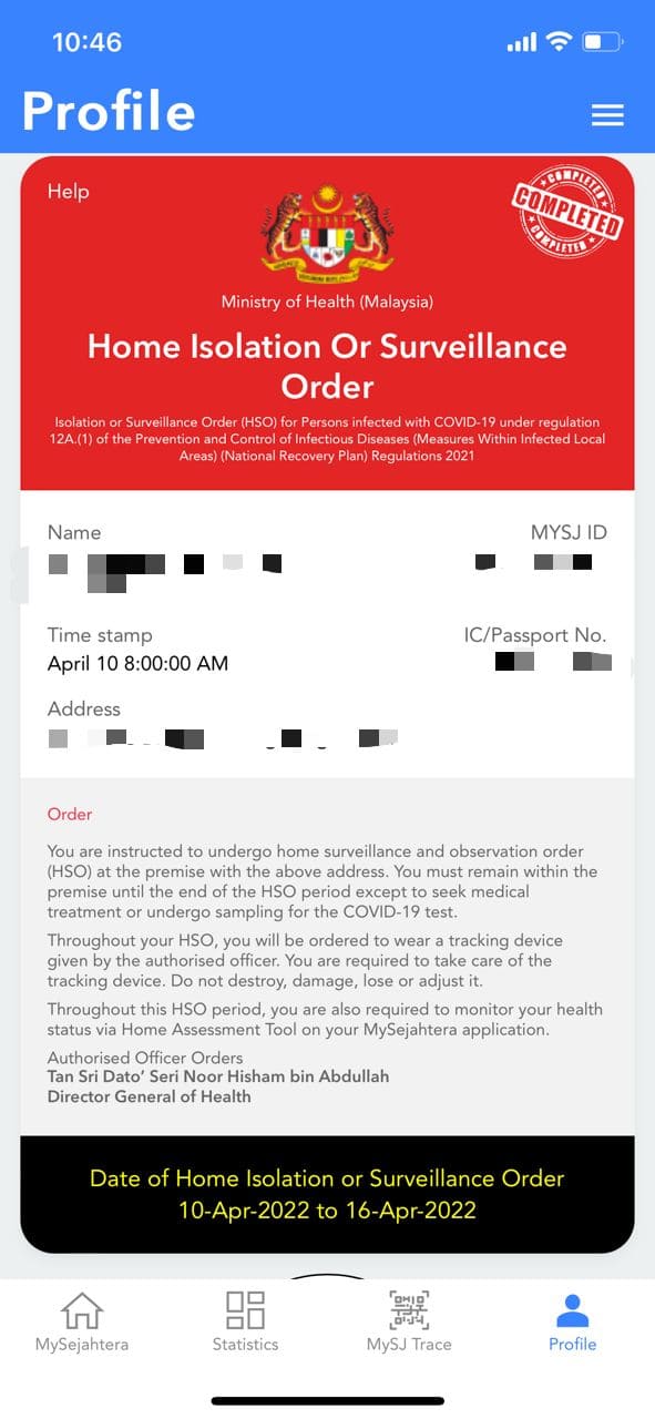 - Surat Perintah Kuarantin KKM (kes kuarantin sahaja)