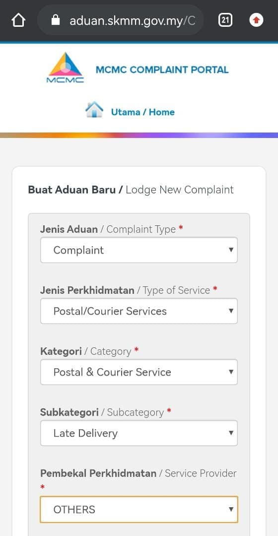 Cara Buat Aduan Barang Pos Lambat Sampai Kepada SKMM