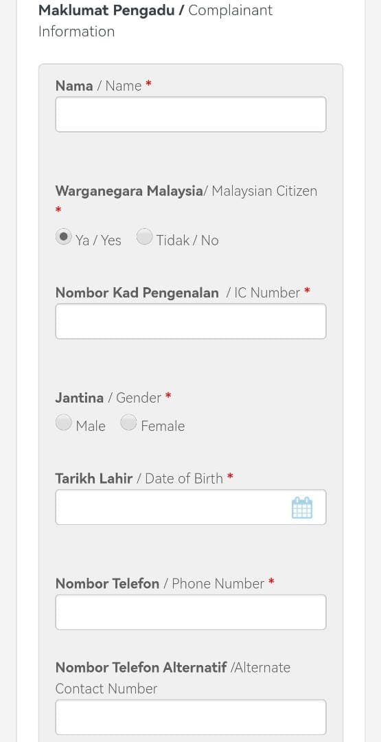 3. Isi maklumat peribadi di ruangan ‘Maklumat Pengadu’