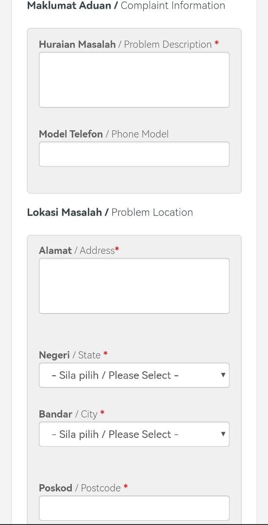 4. Isi ruangan ‘Maklumat Aduan’ – Huraikan masalah dengan lebih spesifik