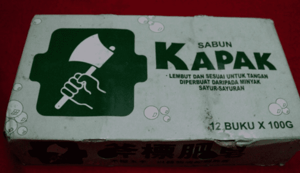 - Sabun Cap Kapak atau Cap Buruh (boleh dibeli di Mydin)
