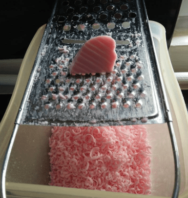 - Dengan menggunakan penyagat, sagat sabun buku halus-halus. Untuk satu basuhan yang mempunyai 2-3 pasang baju sekolah, jumlah sabun yang digunakan lebih kurang 3 buku. Jadi lebih baik kalau korang sagat banyak-banyak sabun terus dan simpan dalam bekas kedap udara. Nanti tak perlulah nak menyagat setiap kali nak mencuci, kan?