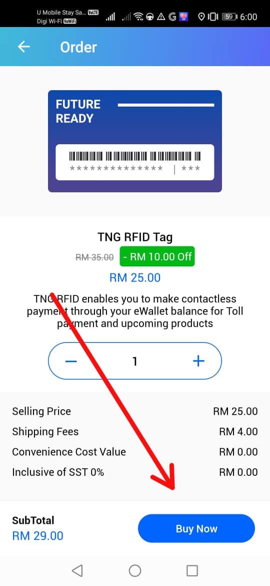 Untuk menggunakan sisten RFID, kita perlulkah membeli TnG RFID tag dahulu. Harga bagi tag ini adalah:
