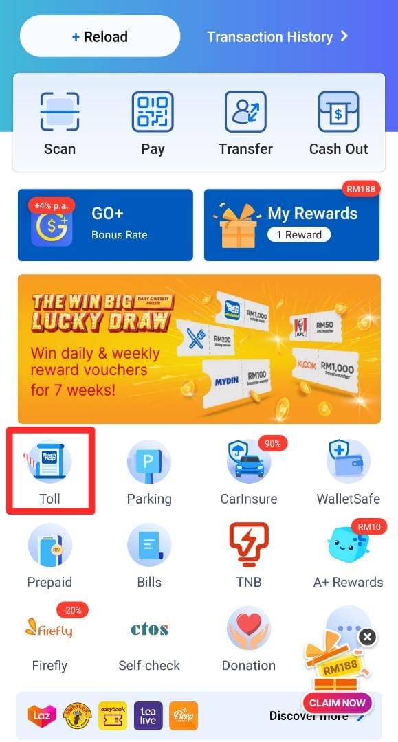 1. Muat turun aplikasi Touch ‘n Go eWallet di Google Playstore atau Apple AppStore dan Buka Akaun