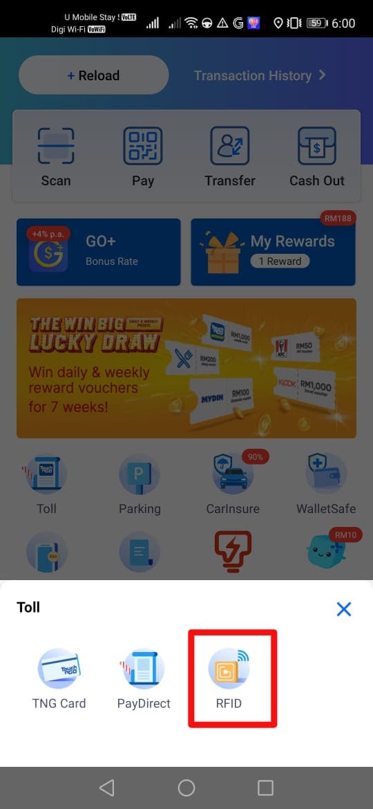 5. Dalam masa 24 Jam, notifikasi dalam Touch ‘N Go eWallet akan diterima mengenai pengaktifan RFID. Selesai