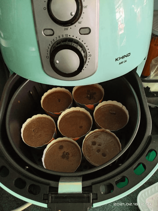 Kalau nak membakar kek, jangan gunakan loyang yang muat-muat saiznya dengan bekas air fryer. Kalau korang buat macam ni, nanti bahagian atasnya saja yang masak sebab udara panas di dalamnya tak dapat nak beredar dengan baik sampai ke bahagian bawah. Sebaliknya, gunakan je loyang yang lebih kecil supaya kek dapat dibakar dengan sempurna.