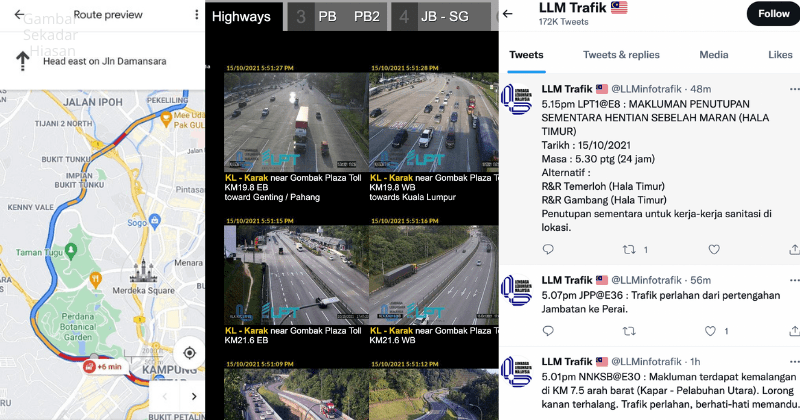 Selain daripada ikuti nasihat yang disarankan oleh pihak berwajib, antara cara yang korang boleh guna untuk check jalan jem ataupun tidak adalah: