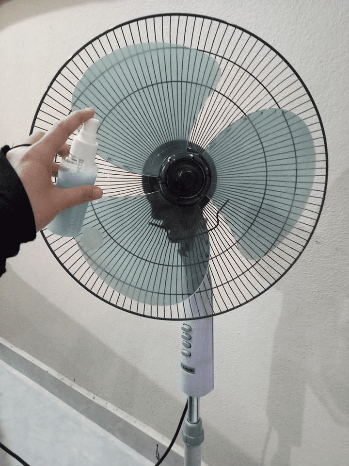 - Semburkan larutan tadi ke arah kipas. Tak perlu buka apa-apa bahagian. Pastikan semua bilah kipas terkena semburan tersebut.