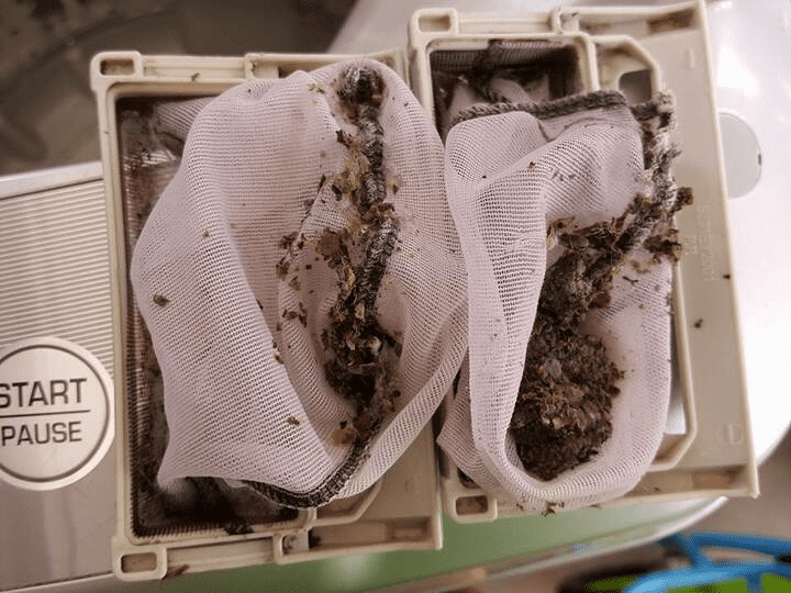 - Setelah selesai, korang akan nampak keladak-keladak yang terkumpul di dram mesin basuh dan bahagian penapis.