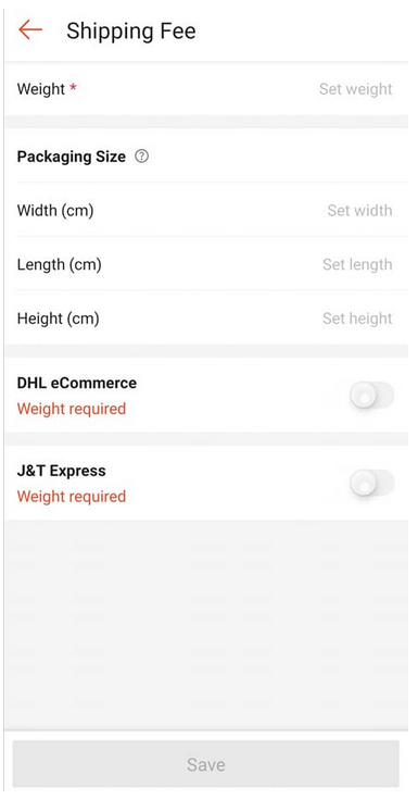 - Ini perkara paling penting yang korang kena isi mengenai produk atau barangan yang korang nak jual, iaitu berat dan dimensi produk. Dimensi ni termasuklah panjang, lebar dan tinggi produk tersebut. Maklumat ini penting untuk aplikasi Shopee menentukan ‘shipping fee’ untuk produk tersebut nanti.
