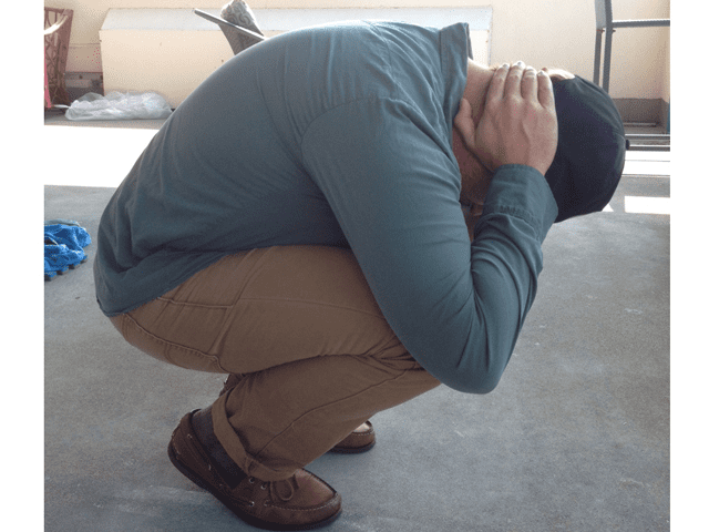 Jika tak ada langsung tempat yang korang boleh berlindung, jangan baring! Cepat-cepat ambil posisi kedudukan pertahanan petir iaitu; mencangkung dengan kedua-dua belah kaki dirapatkan dan menutup telinga dengan tangan. Pastikan korang tak berada dekat dengan apa-apa objek besi.