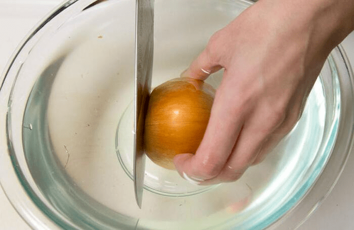 Selain rendam dahulu sebelum potong, tips seterusnya adalah kupas terus bawang tersebut dalam air. Melalui cara ini enzim yang terdapat pada lapisan bawang tu akan merembes ke dalam air dan tidak akan berterbangan di udaras. Cara dia mudah je, rendam dalam bekas berisi air dan kupas bawang di bawah permukaan air tu.