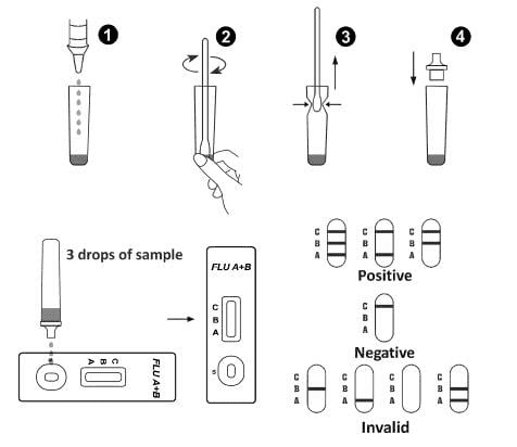 Seperti dimaklumkan, kit ujian kendiri Influenza boleh digunakan iaitu ujian pengesanan Influenza menggunakan air liur. Langkahnya adalah seperti berikut: