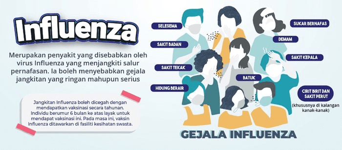 Ini bermaksud kita boleh menggunakan air liur sahaja untuk melakukan ujian kendiri menggunakan test kit influenza yang ada. Tak perlu pun pergi ke klinik atau hospital untuk dapatkan ujian, boleh buat terus di rumah sahaja. Influenza ni sakit macam Covid-19 juga ke? Macam mana ianya boleh berjangkit dan apa pula simptom yang dihadapi pesakit? Jangan risau di bawah ini akan dikongsikan maklumat lanjut mengenai penyakit Influenza.