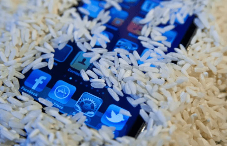 Mungkin korang selalu dengar, kalau telefon terendam dalam air perlu masukkan dalam beras untuk cepat kering. Sebenarnya, cara ni tak berkesan pun. Gazelle.com telah membuat eksperimen mengeringkan telefon yang basah dengan 6 bahan berlainan untuk melihat mana satu bahan yang menyerap air yang paling laju. Dan hasilnya, telefon basah yang direndamkan dalam beras adalah yang paling lambat kering. Malah, apabila memasukkan telefon dalam beras, habuk-habuk dan debu boleh melekat padanya. Jadi cara yang lebih berkesan adalah untuk membiarkan telefon tersebut kering dengan sendirinya.