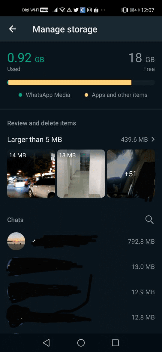 Tak tahu chat mana yang makan paling banyak memori? Jangan risau, Whatsapp boleh susunkan mengikut saiz kebesaran chat. Caranya mudah je, ikuti langkah berikut: