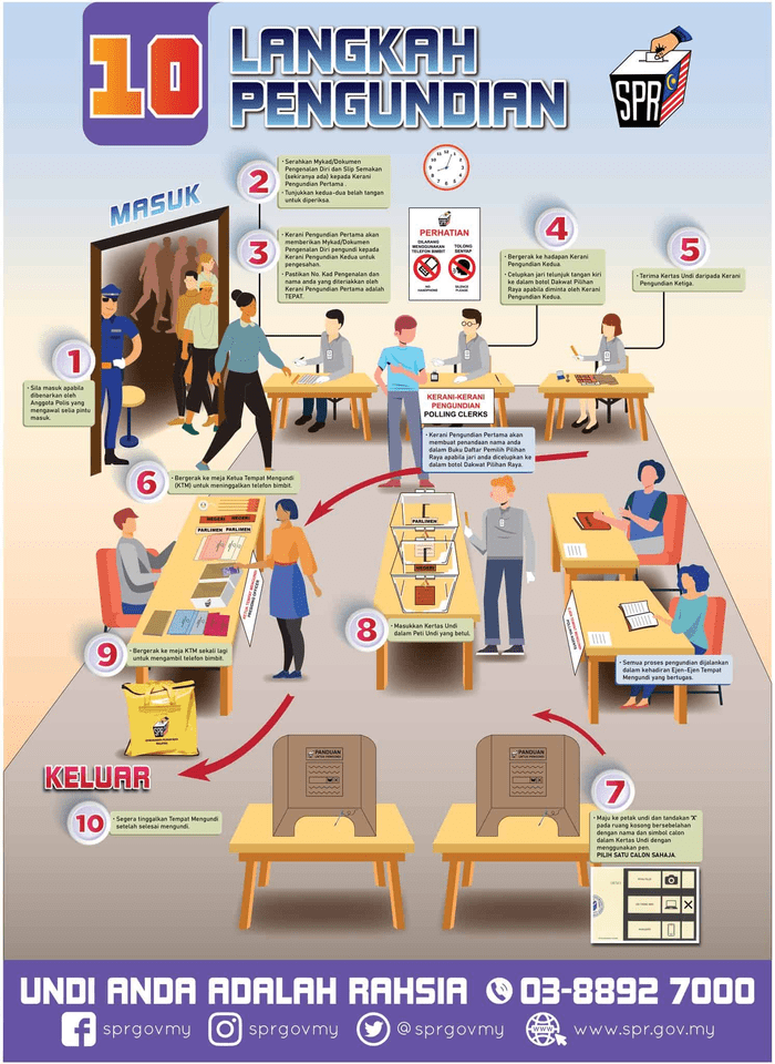 Berikut adalah 10 langkah semasa mengundi yang telah dikongsikan oleh SPR: