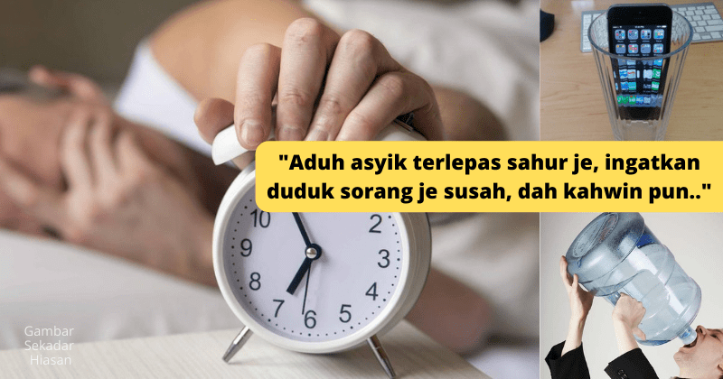 Tak bangun sahur ni bukan jadi pada orang yang duduk bujang je contohnya masa student ataupun bila dah kerja. Tapi orang yang berkahwin dan berkeluarga pun ada jugak yang terlajak tak bangun sahur ni tau. Mungkin semalamnya berbuka buffet ramadhan dekat hotel jadi kenyang sangat sampai tak sengaja tak bangun.