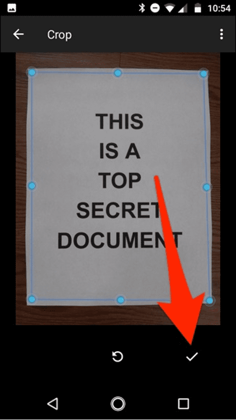 - Selarikan telefon dengan dokumen yang mahu discan, dan tap butang menangkap gambar.