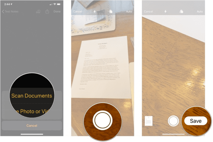 - Tap pada simbol kamera, dan pilih Scan Documents.