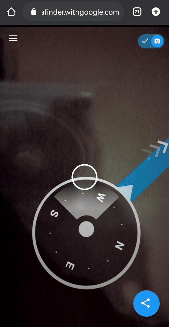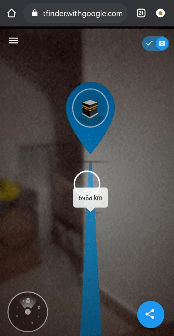 5. Gerakkan kamera sehingga selari dengan garisan biru yang menunjukkan arah kiblat