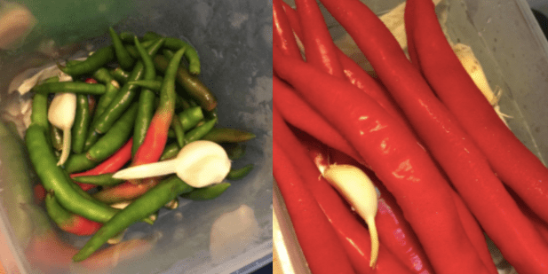 - Letakkan sekali beberapa biji bawang putih yang dikupas kulit. Bawang putih ni berfungsi untuk menyerap lebihan lembapan yang membuatkan cili kita menjadi lembik dan rosak.