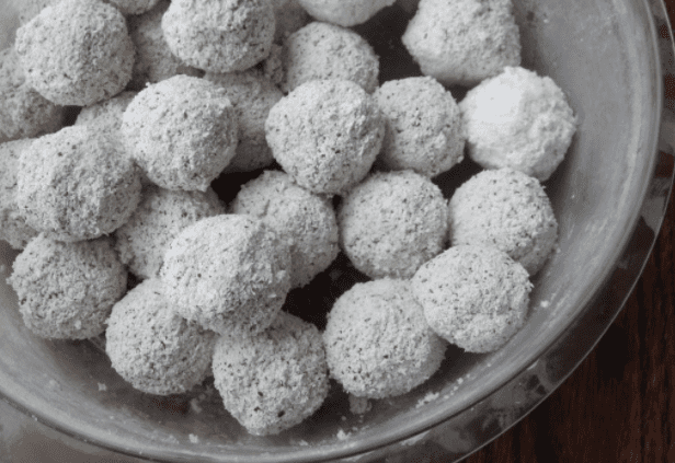 - Gumpalkan kelapa parut tu sampai jadi bentuk bebola. Kalau ia kering sangat, boleh tambahkan sedikit air.