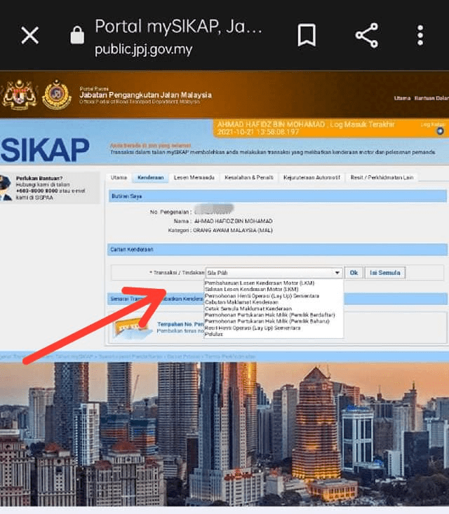 Cara Tukar Nama Kenderaan Secara Online MySikap JPJ