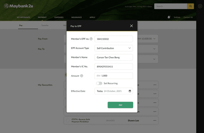 Jadi untuk yang bekerja sendiri tu, jangan buang masa lagi terus carum KWSP sendiri menerusi i-Saraan KWSP. Berikut adalah salah satu caranya menggunakan Maybank2U: