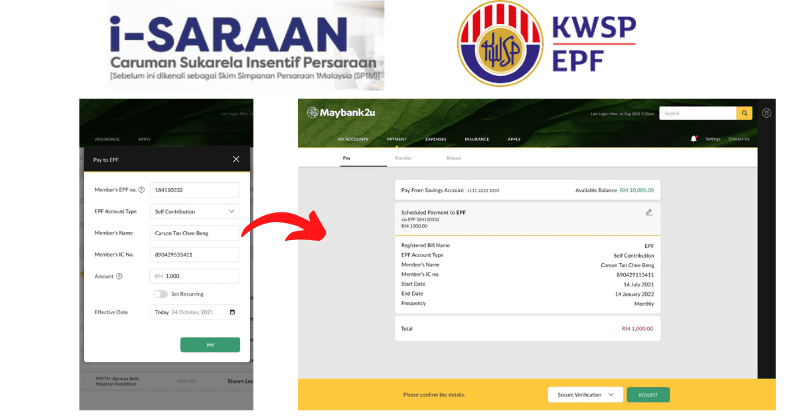 Mudah sahaja kan? Lepasni tak perlu dah nak ke KWSP untuk buat urusan caruman secara manual. Lagi bagus boleh buat bayaran secara auto deduct setiap bulan bermaksud tak perlu log masuk Maybank2U setiap bulan kerana bayaran telah dibuat secara automatik. Kalau nak tahu bank mana lagi boleh buat i-Saraan atau caruman sendiri ini boleh baca di SINI