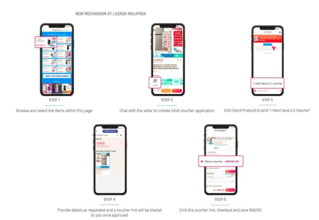 - Hubungi peniaga yang akan menolong untuk memohon baucar SAVE untuk pembeli