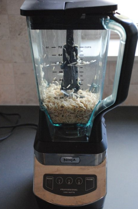 - Masukkkan secawan atau secawan setengah beras di dalam pengisar