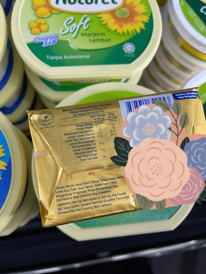 Kalau hendak berikan makanan ini kepada anak-anak juga, cuba cari ‘pure butter’. Elakkan marjerin yang mempunyai kandungan transfat.