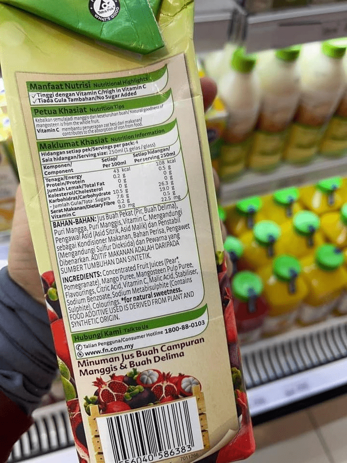 Selain air susu dalam kotak, jus buah dalam kotak juga tidak elok untuk anak-anak kita. Tidak ada satu jenis jus buah pun yang kita buat di rumah, tahan lebih daripada 3 hari kan. Ia juga sangatlah tinggi dengan kanduangan gula.