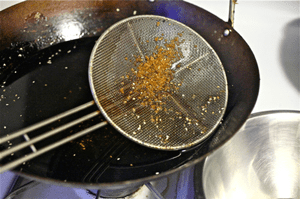Justeru itu, tapis minyak masak yang telah digunakan sebelum menggoreng yang baru ataupun setelah menggoreng. Gunakan penapis jaring besi atau senduk untuk menapis dan mengangkat sisa gorengan yang lebih tersebut.