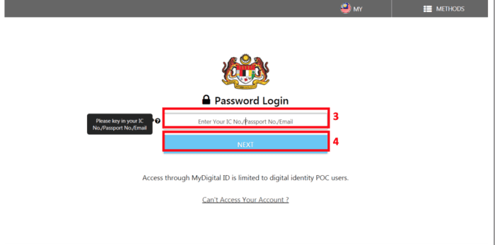 3. Isi pada ruangan disediakan Nombor Kad Pengenalan / No. Passport / Email