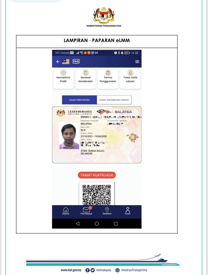 - Semakan berkaitan Perlesenan pemandu seperti tarikh tamat lesen memandu dan keputusan ujian memndu