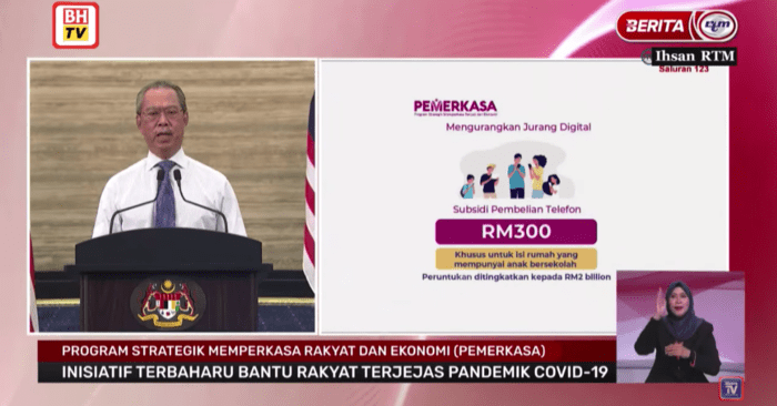 - Kini, kerajaan akan menambahbaik subdsidi ini kepada RM300 khusus untuk isi rumah yang mempunyai anak bersekolah untuk membeli telefon pintar atau peranti baru.