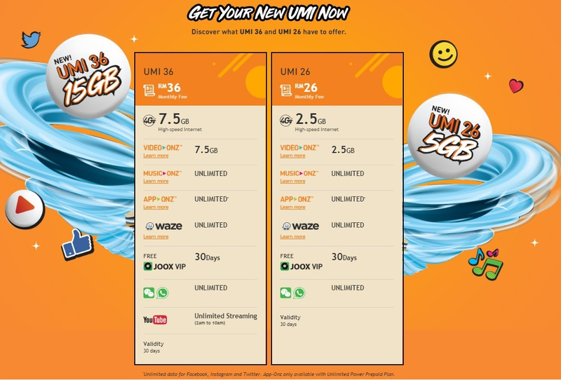 - Panggilan dan SMS tanpa had kepada semua rangkaian