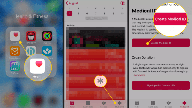 - Lancarkan apps Apple Health. Tap pada ikon Medical ID, kemudian pilih Create Medical ID.