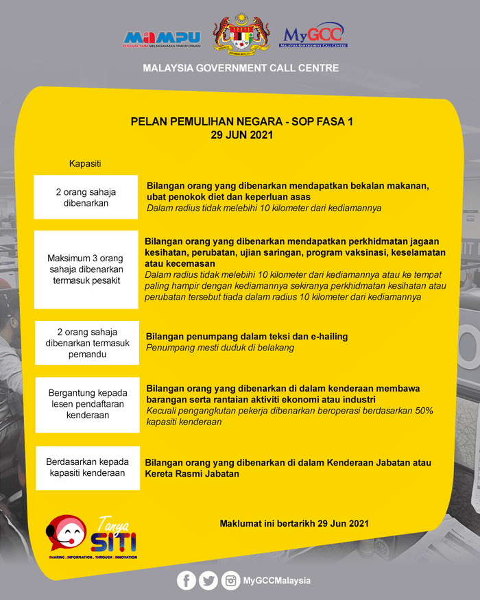 Berikut adalah antara beberapa infografik yang dibuat oleh Malaysia Government Call Centre tentang SOP terkini.