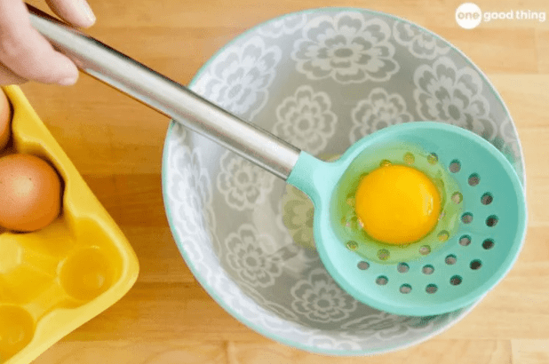 Tak perlu beli perkakas dapur yang mahal-mahal pun hanya untuk memisahkan telur kuning dengan telur putih. Korang boleh guna perkakas gantian alatan dapur ni je untuk pecahkan telur iaitu di atas senduk berlubang, dan lihat putih telur terpisah daripada kuning telur secara perlahan-lahan.
