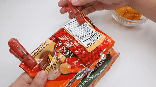 Kadang-kadang, bila tak habis makan keropok, ada orang akan ikat dengan getah, kan? Tapi getah kadang-kadang tak tahan lama dan akan terputus. Kalau dekat rumah tak ada klip makanan, boleh je gantikan dengan penyepit baju. Fungsinya sama je, mengepit untuk elakkan daripada keropok masuk angin.