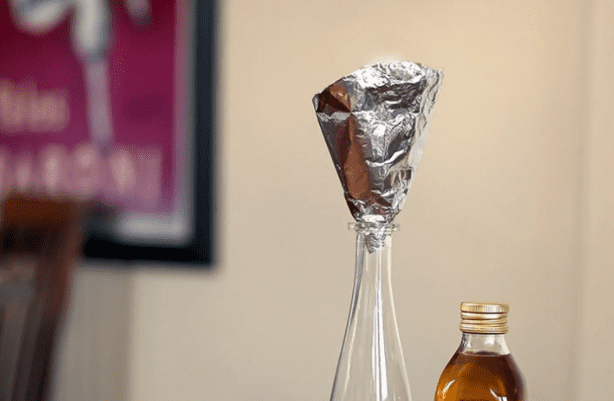 Bila beli minyak paket, satu benda yang paling susah nak buat adalah untuk memindahkan minyak daripada paket ke dalam botol. Kalau tangan tergerak sedikit je mesti akan tertumpah. Sebab tu lebih senang kalau guna corong. Tapi kalau dekat dapur tak ada corong, korang boleh gantikan dengan aluminium foil yang dibentuk seperti corong. Pastikan setiap lipatan dikelim dengan cermat supaya tak bocor.