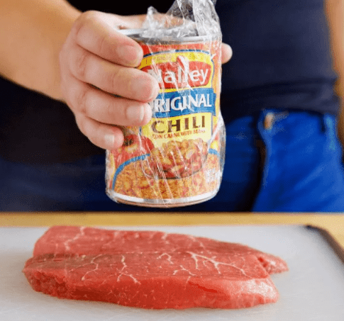 Tak perlu nak keluar duit lebih pun untuk beli pelembut daging. Gunakan makanan dalam tin pun boleh lakukan benda yang sama. Cuma pastikan sebelum nak menumbuk daging, pastikan balut dulu tin tu dengan plastik untuk elakkan tin tersebut rosakkan daging. Kalau tak guna tin makanan, boleh juga gantikan dengan lesung batu.