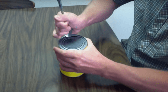 - Bila lubang dah cukup besar, cungkil penutup tin dengan sudu untuk membuat bukaan lagi luas supaya makanan dalam tin boleh keluar dengan mudah.